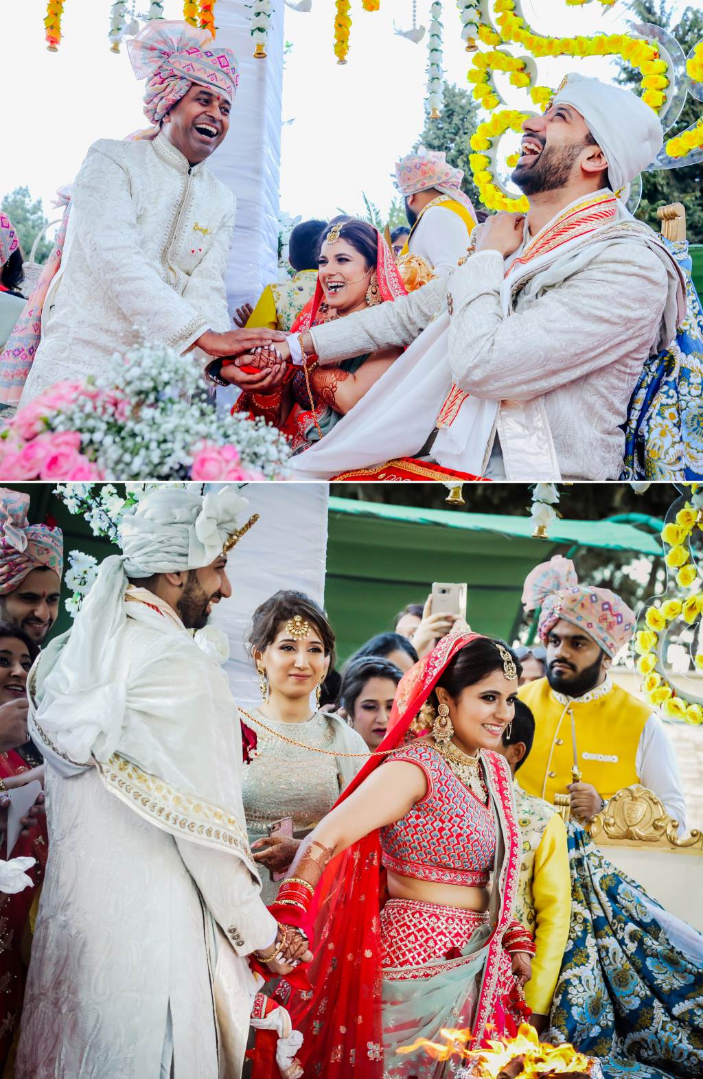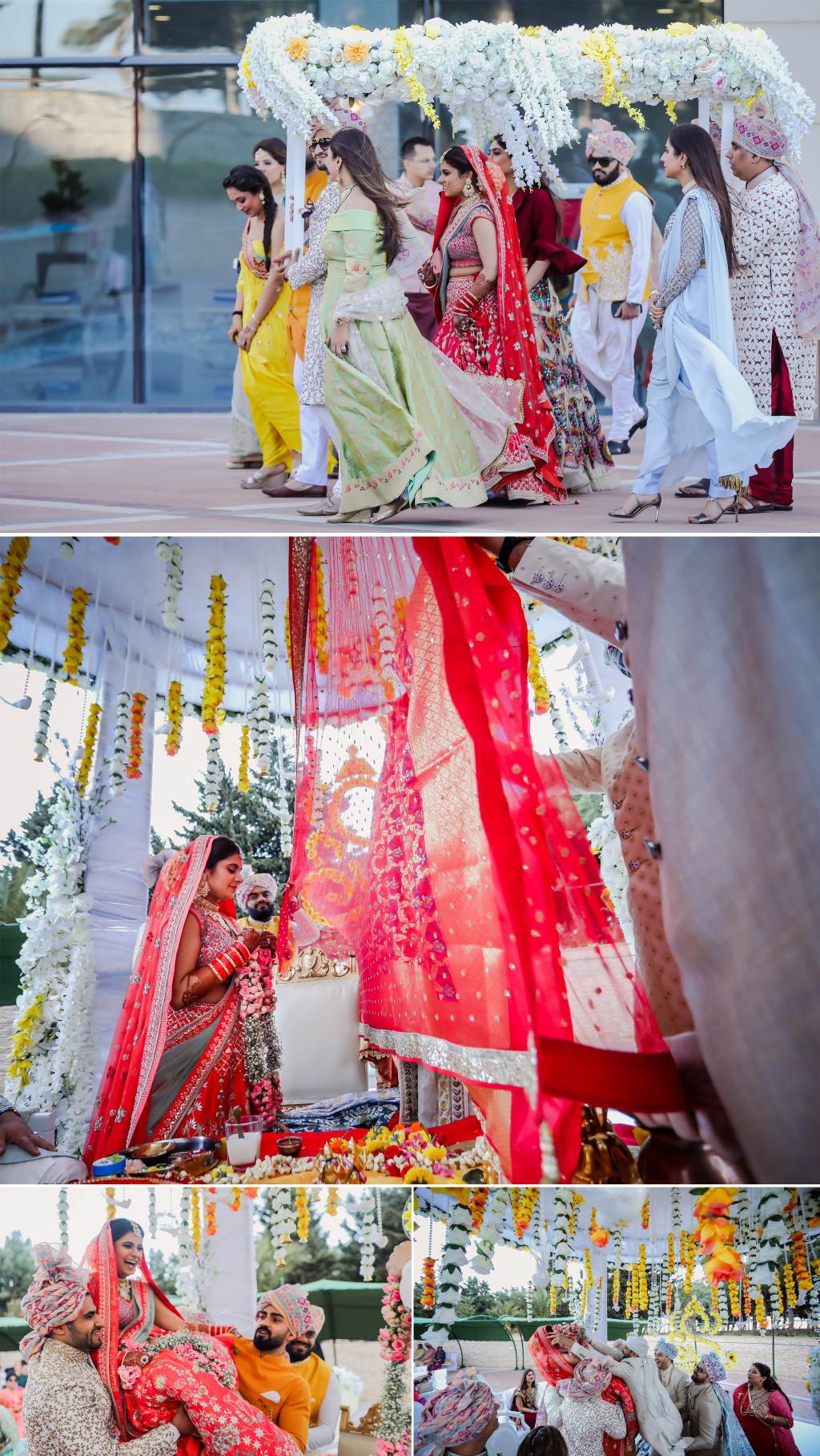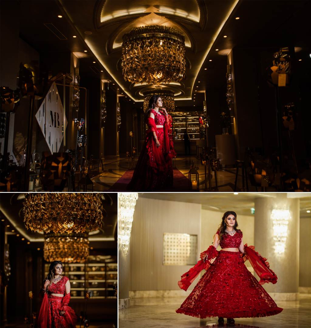 Bride’s Outfits: Nachiket Barve (Mehendi), Hasan Mardash, Dubai (Ring Ceremony), Nadine Dhody (Sangeet), Anita Dongre (Wedding), Amit Agarwal (Reception)