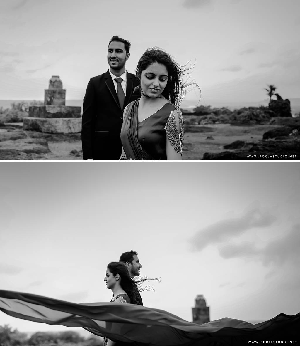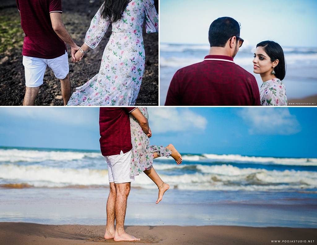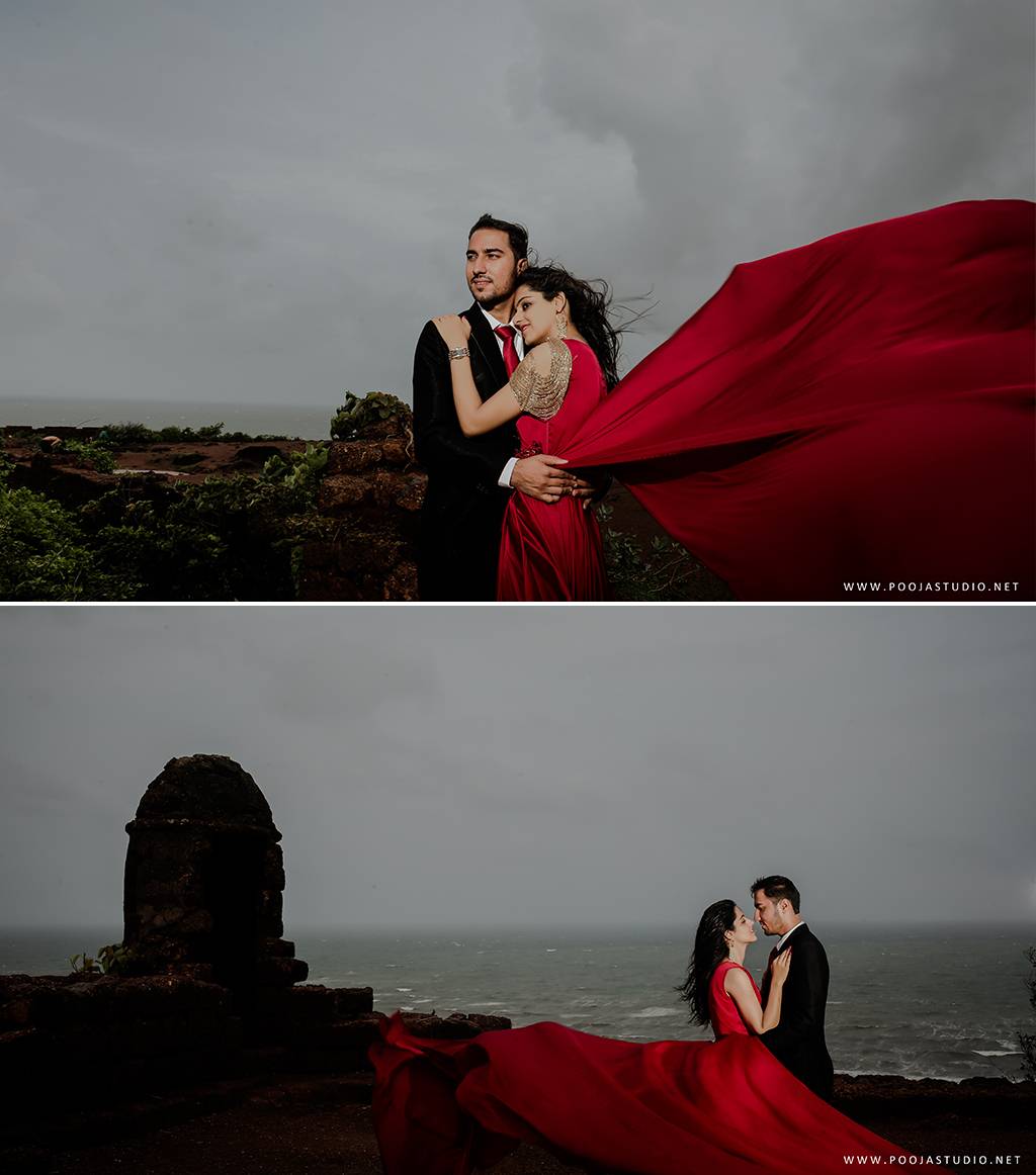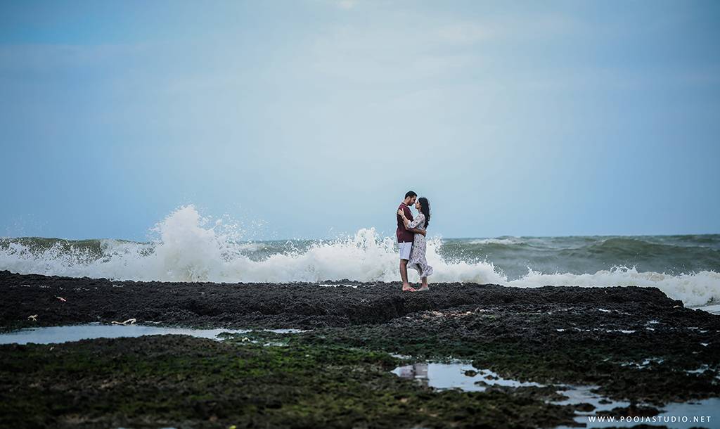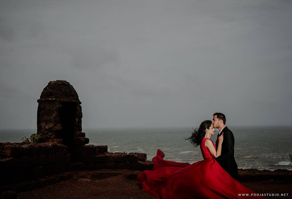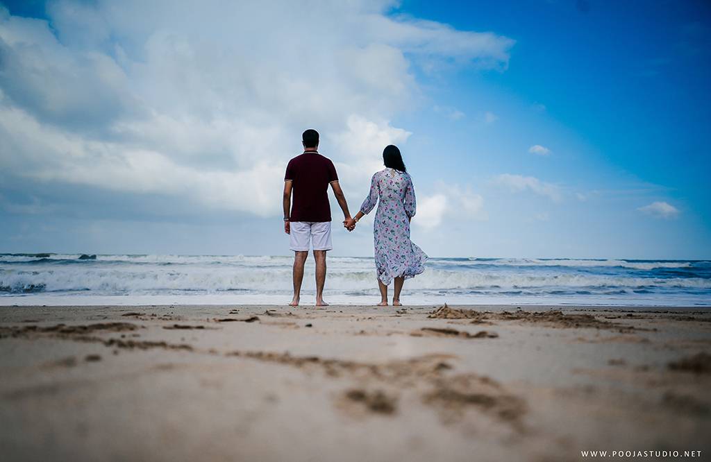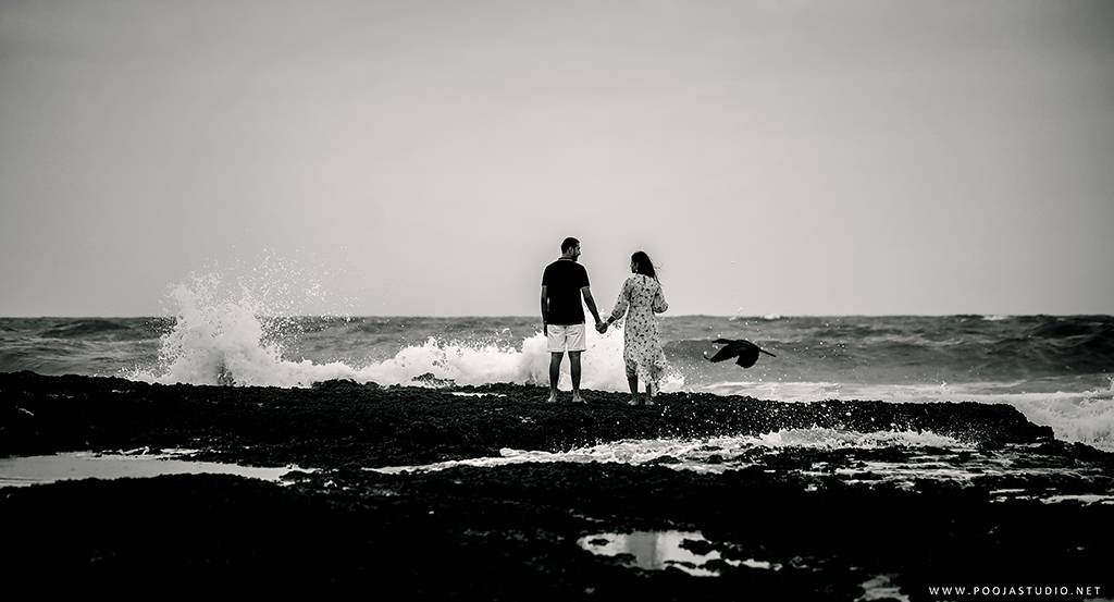 When love becomes more than just a feeling, a great story takes place. A story where not only two bodies get together but two souls become one. Wait, are we describing the love story of Pratik and Priyanka? These two people once strangers, then lovers and now would be life partners spent their most beautiful time before the wedding, pre-wedding shoot in Goa. The team of pooja studio flew from Dubai to the enchanting destination Goa to shoot the wonderful pre-wedding shoot of the lovely couple. The enchanting sea encircled the lovely couple while pre-wedding shoot hence creating an ambiance of love all around.