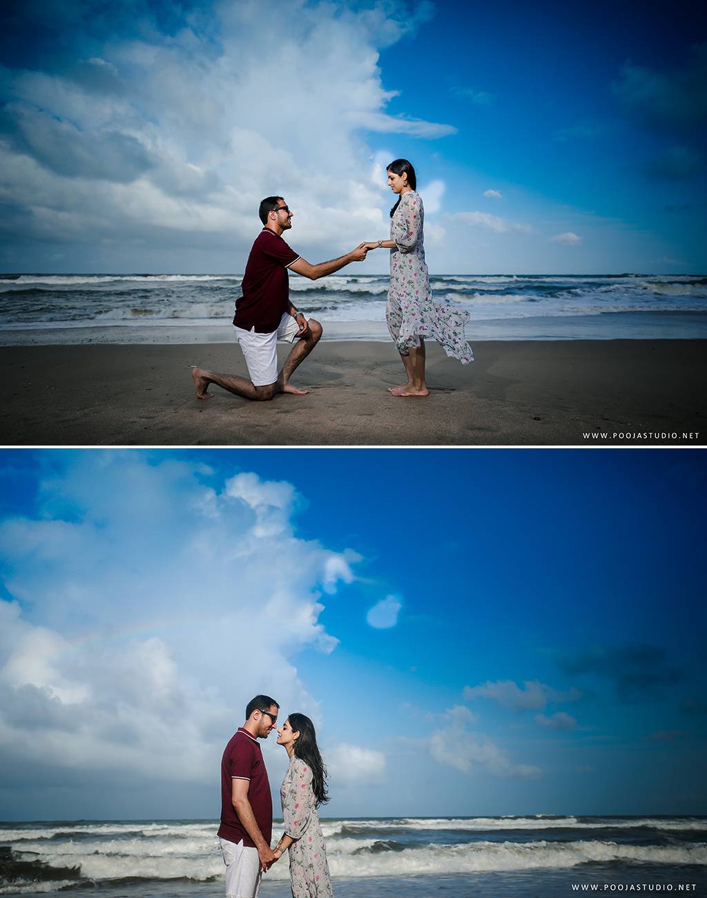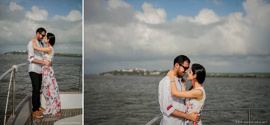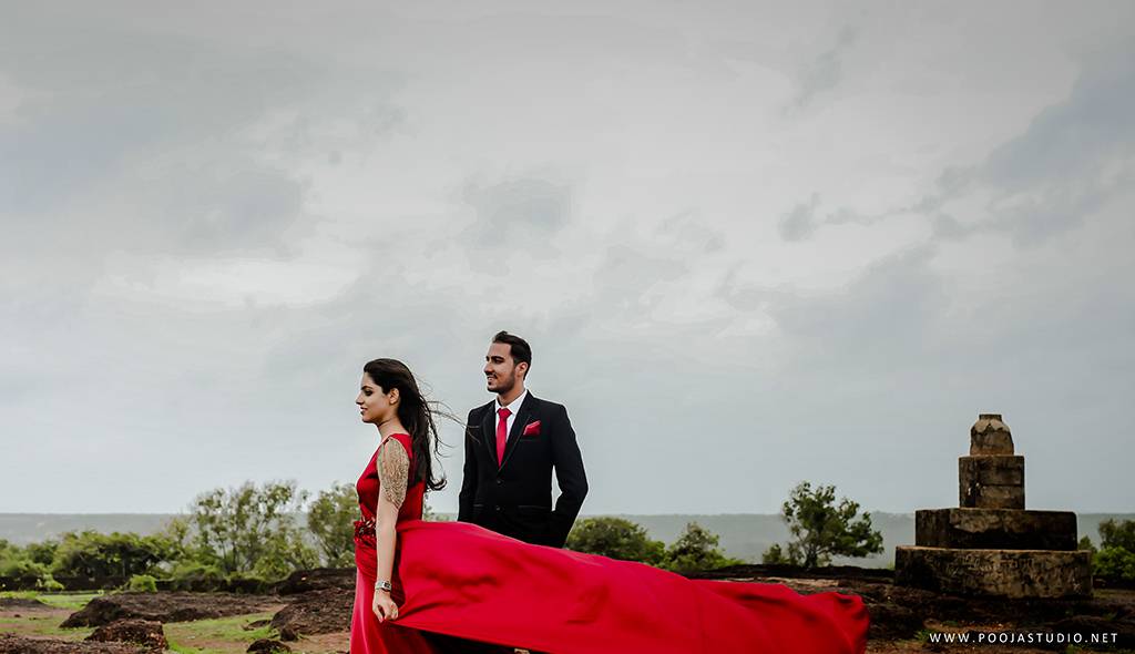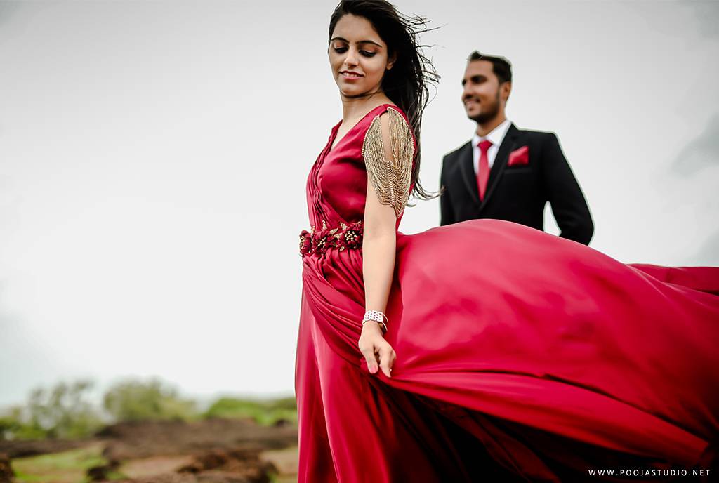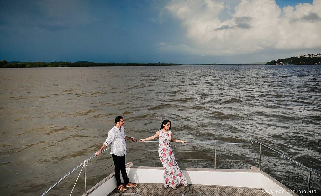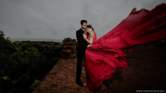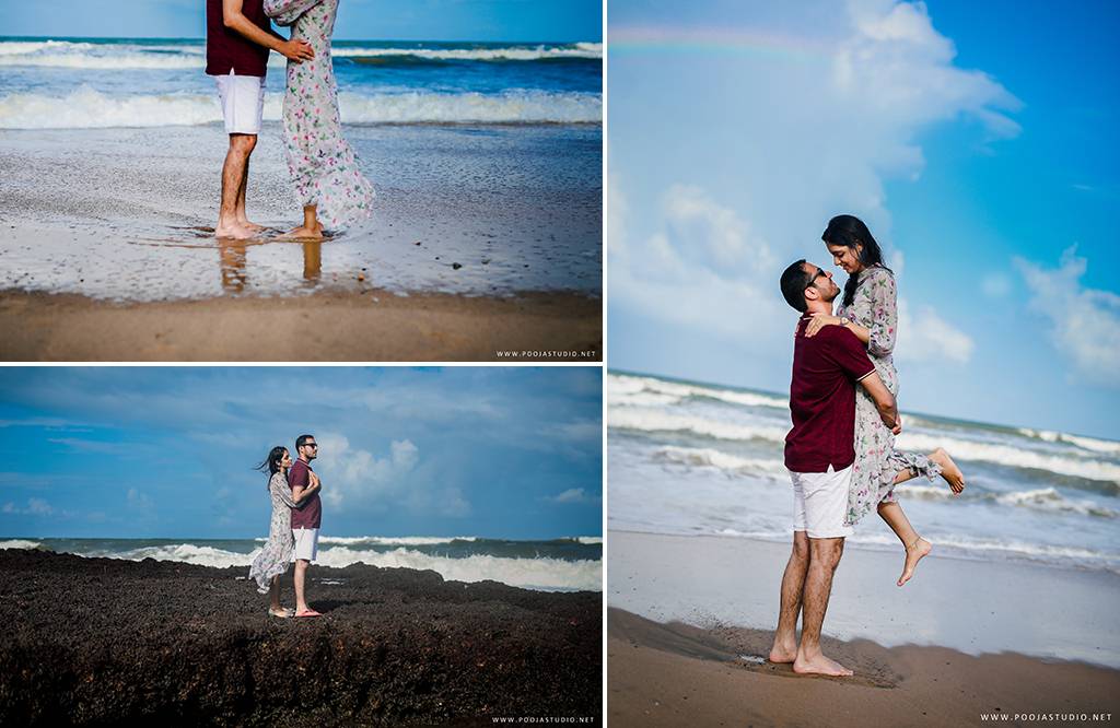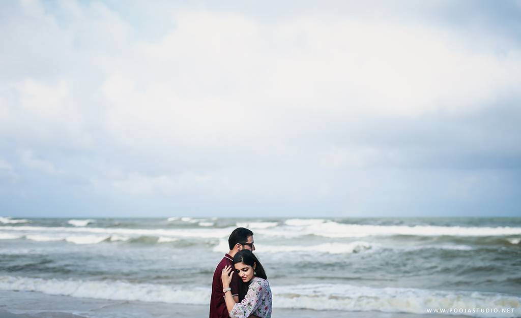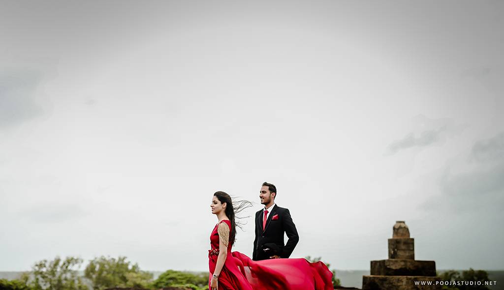 When love becomes more than just a feeling, a great story takes place. A story where not only two bodies get together but two souls become one. Wait, are we describing the love story of Pratik and Priyanka? These two people once strangers, then lovers and now would be life partners spent their most beautiful time before the wedding, pre-wedding shoot in Goa. The team of pooja studio flew from Dubai to the enchanting destination Goa to shoot the wonderful pre-wedding shoot of the lovely couple. The enchanting sea encircled the lovely couple while pre-wedding shoot hence creating an ambiance of love all around.