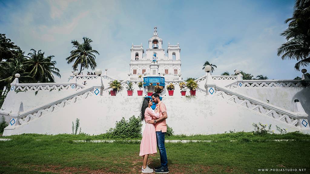Their story of love is captured at the hills and beaches of beautiful pre-wedding destination, Goa. An instance where the couple relives their love story at the Church of Our Lady of Immaculate Conception is one of the most mesmerizing moments. The pre-wedding shoot of